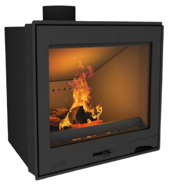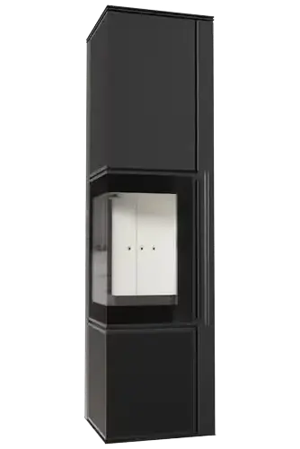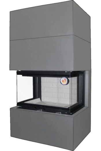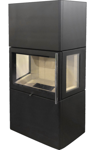 Печь-Камин R1 L с прямой задней стенкой и высотой 1350 мм c максимальной панорамой пламени создает прекрасный вид на огонь из любой точки помещения.