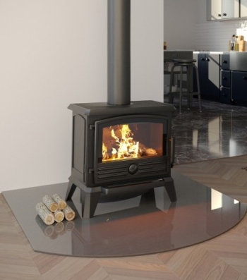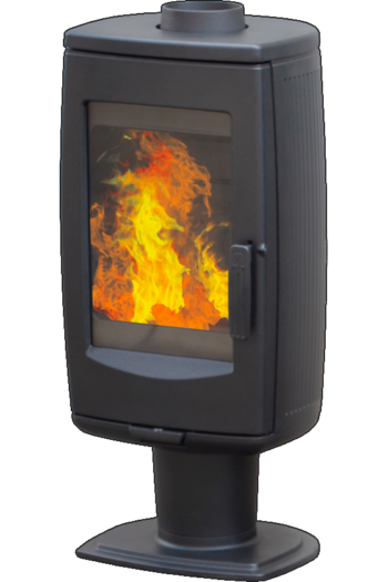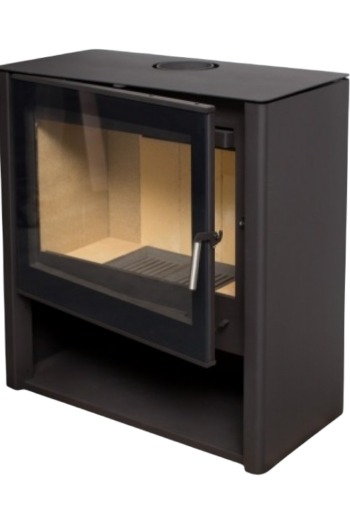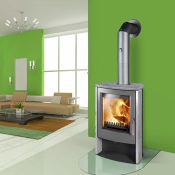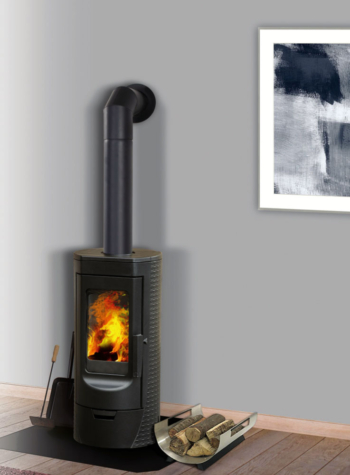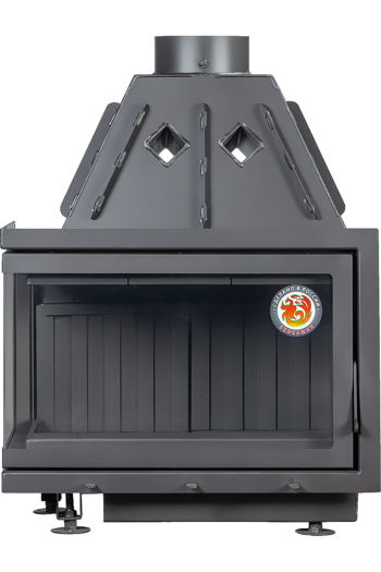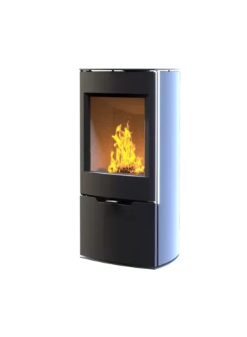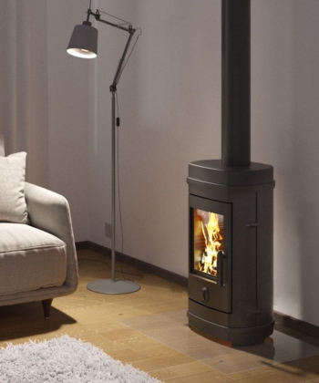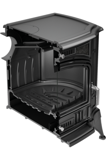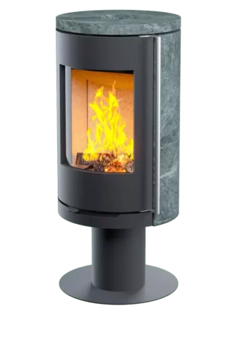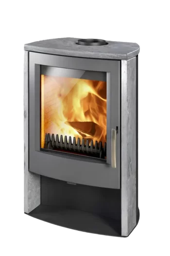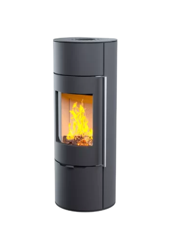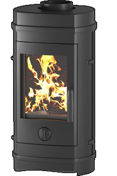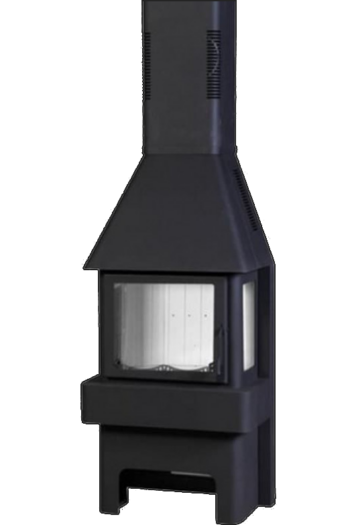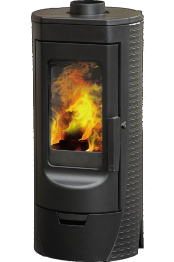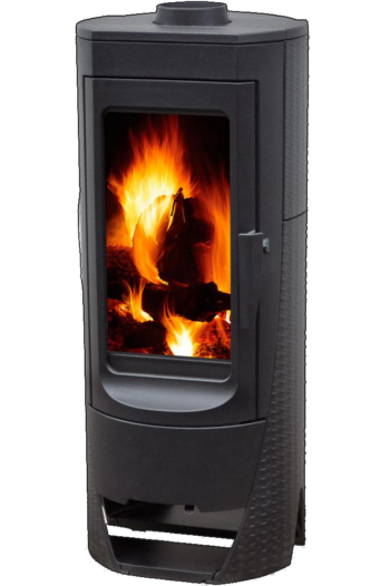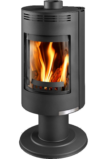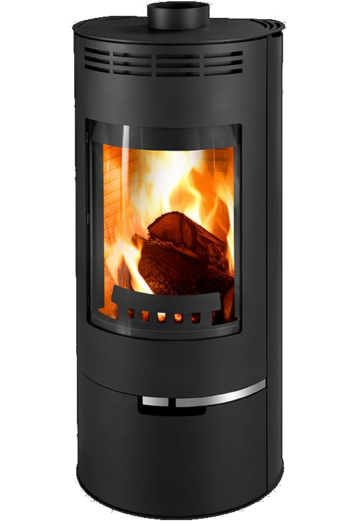 Печь-Камин R1.0 N K c каменными панелями и круглой задней стенкой c максимальной панорамой пламени создает прекрасный вид на огонь из любой точки помещения.