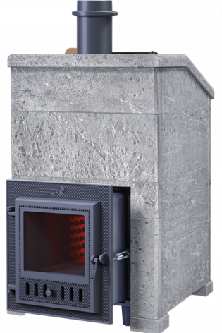 GFS-ЗК 30 – печь с усиленной каменкой большей массы, с единым углублением внутрь топки для дополнительной укладки чугунного заряда. Теплосъемные шипы, со стороны горения пламени, в разы увеличивают площадь соприкосновения огня с каменкой и ускоряют передачу тепла, а также способствуют лучшему дожигу смешивая потоки пламени и воздуха поступаемого из воздушника. Эти усовершенствования значительно повышают мощность парообразования печи и выдают большее количество пара при непрерывной подаче воды. Каменка печей GFS-ЗК является незаливаемой.