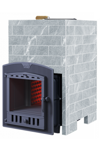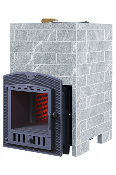 GFS-ЗК Ураган 25 (П)2 – расширенный комплект печи в сетке. Максимально приближенный вариант печи для режимов русской парной, имеющий непосредственно закрытую чугунным коробом каменку, дверцу для пара с ручкой из бука. Печь легко модернизируется до полноценной печи предназначенной для Русской бани путем замены стальной сетки на каменную облицовку без демонтажа дымохода.