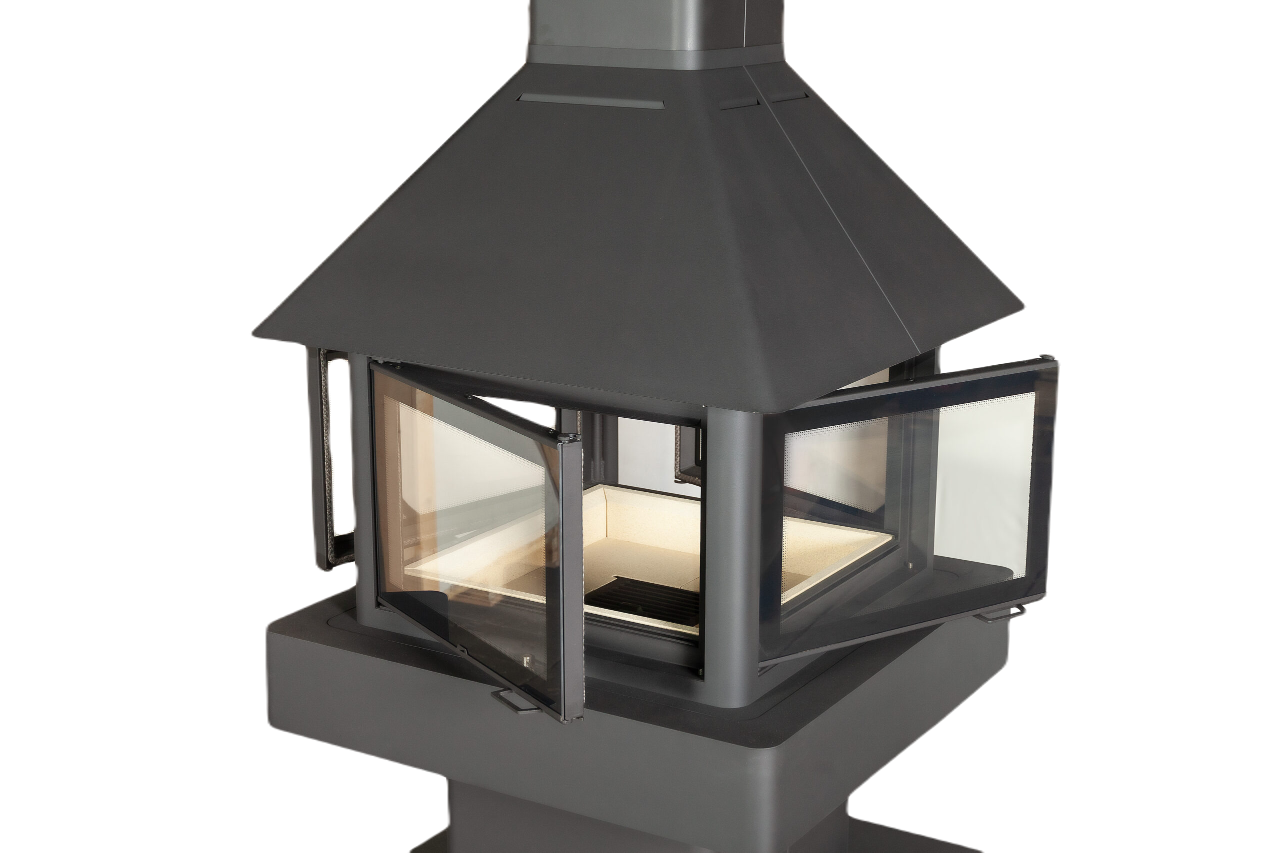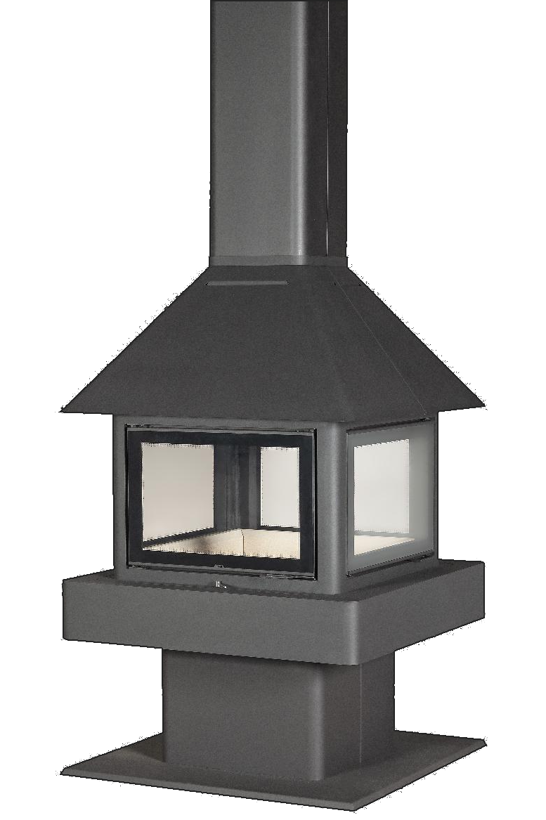 Островной камин с 4 стеклами, с кожухом трубы
