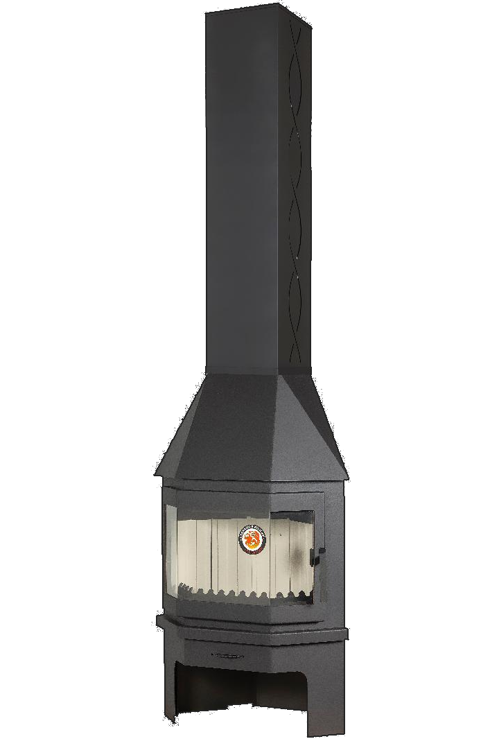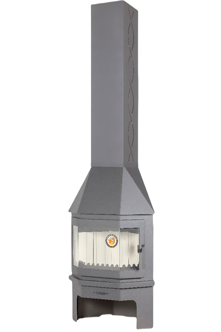 Сверху корпус покрашен краской в двух вариантах – черном или графит. Мощность камина – от 7 до 16 кВт. Вес конструкции в пределах 130 кг, что позволяет не подготавливать основание перед установкой.