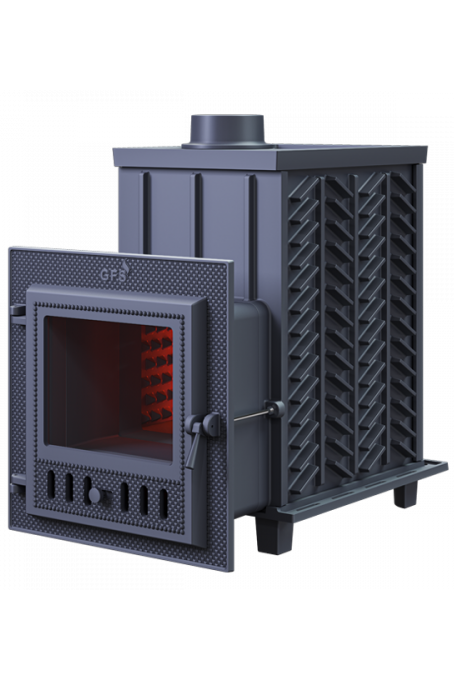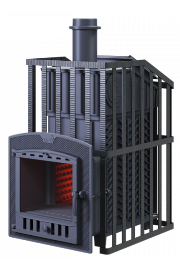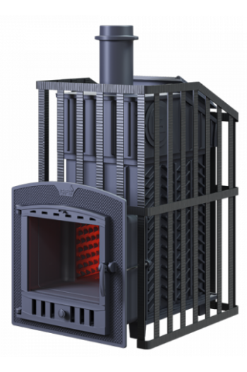 Печь легко модернизируется до полноценной печи предназначенной для Русской бани путем замены стальной сетки на каменную облицовку без демонтажа дымохода.