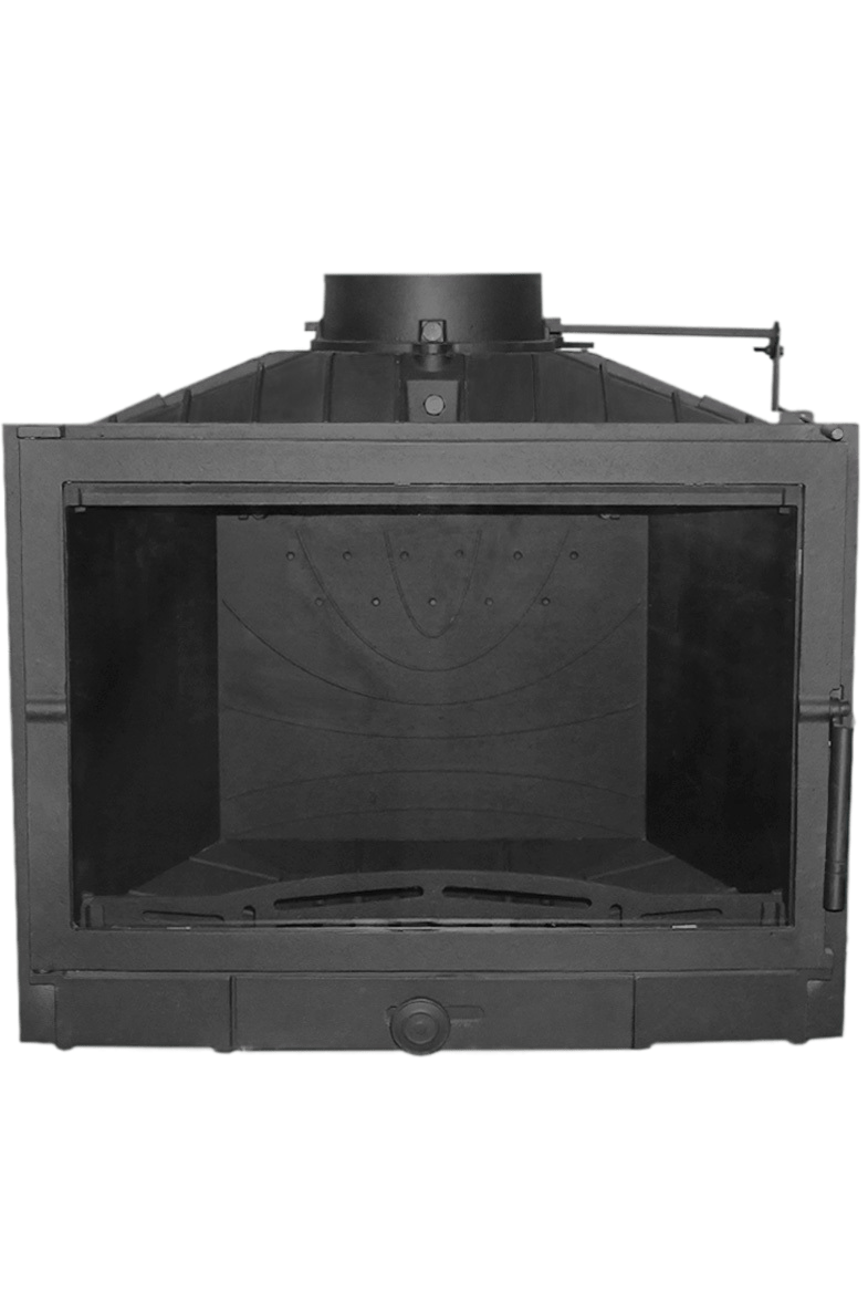 Каминная топка EVEREST K10 предназначена для обустройства дровяного отопления в загородном доме, обустройства каминной зоны и обогрева помещений объёмом до 200 кубических метров. Топка K10 пристенного размещения устанавливается на подставке или встраивается в камин индивидуального изготовления.Топка EVEREST K10 изготовлена из качественного жаростойкого чугуна европейского производства, отличается классическим внешним видом с минималистичным дизайном. Большая стеклянная дверь позволяет удобно ухаживать за топкой EVEREST K10 и дарит возможность любоваться горением огня. Дверь оснащена системой «чистое стекло», что предотвращает засаживание стекла при горении дров. Система имеет возможность регулирования подачи воздуха на стекло в верхней части двери. Подача воздуха для горения происходит из колосниковой зоны через щелевые отверстия в панели зольного ящика. Интенсивность подачи регулируется заслонкой. Топка оснащена шиберной заслонкой в патрубке дымохода. Удобная ручка управления положением шибера расположена на передней поверхности печи. Топка имеет режим длительного горения — при закрытии шибера, подачи воздуха на стекло сверху и заслонки зольного ящика, дрова начинают тлеть. Каминная топка EVEREST K10 на одной закладке дров работает до 5-6 часов.
