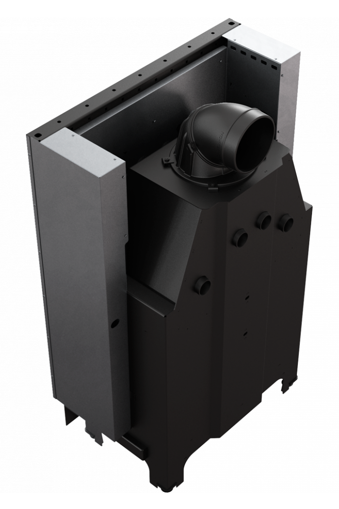 Топка MBА/G относится к серии топок PRO, особенность линейки МВА это размер видимой части топки Ш750, В570 мм, обеспечивает отличный обзор пламени через жаростойкое стекло с шелкографией. Система Lift Up обеспечивает легкий подъем дверцы вверх, очень удобно при добавлении новой закладки дров. Также есть возможность открытия дверцы в бок для поддержания чистоты камина и замены расходных элементов при необходимости. Корпус защищает футеровка TERMOTEC, состав разработан компанией Кратки. Колосниковой решетки нет, топка имеет подовое горение, а небольшое количество мелкого пепла, после завершения работы, можно легко убрать с помощью совка или пылесосом со специальной насадкой. Высокое КПД работы топки обеспечивает отличная герметичность топки, тройная подача воздуха и соответствие европейским нормам и стандартам. Всего одна регулировка (интенсивность горения), исключает возможность неправильного использования камина.
