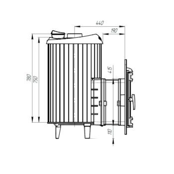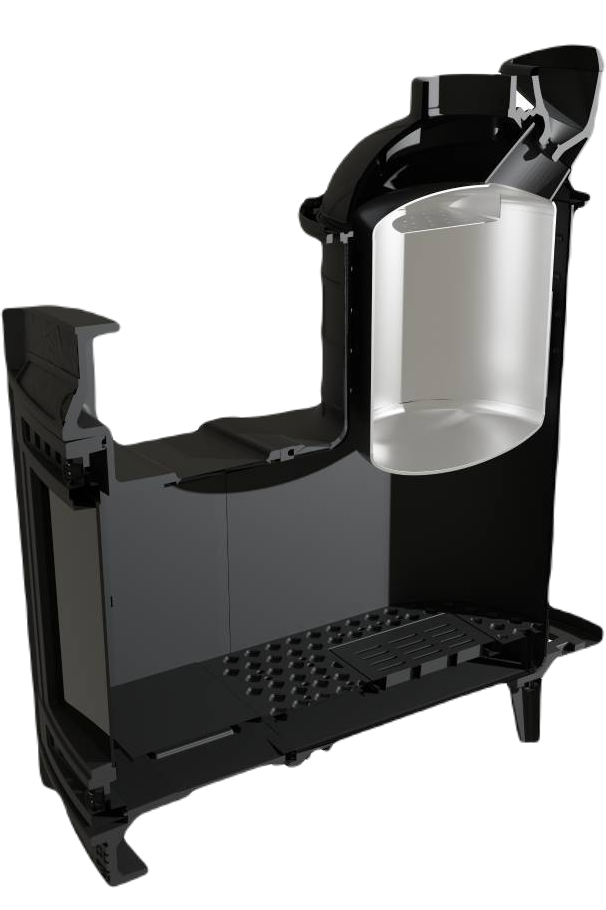 Цельнолитая конструкция топки, без швов гарантирует превосходную прочность.