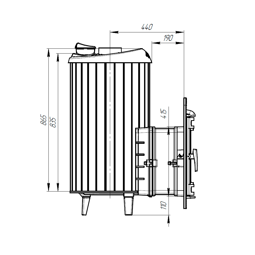 Цельнолитая конструкция топки, без швов гарантирует превосходную прочность.