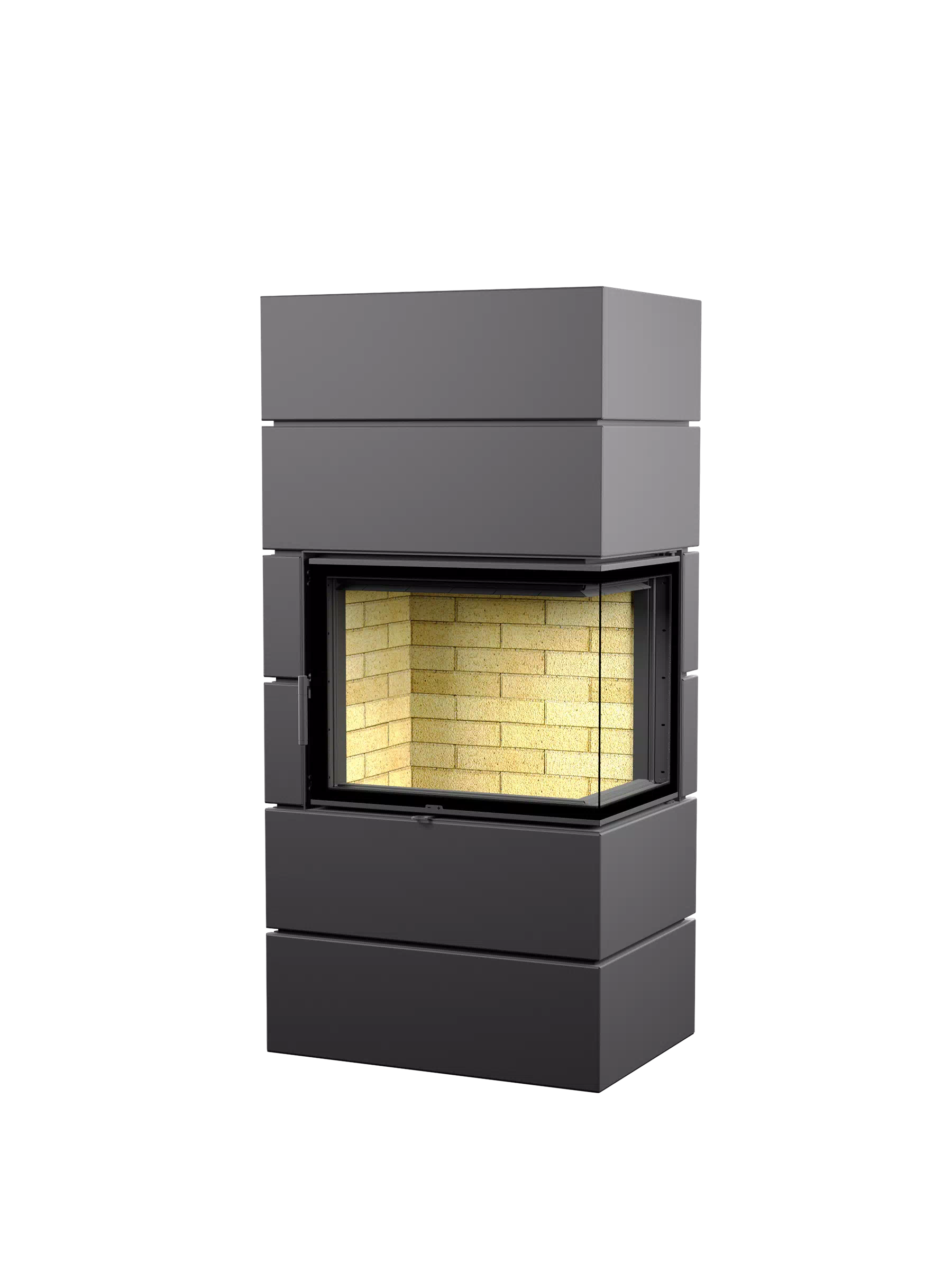 За счет отсутствия между стеклами стойки рамки из метала, Г-образное стекло в топке смотрится единым целым. Номинальная теплопроизводительность устройства 7 кВт. Оптимальный объём зала 150 м3. Вы будете чувствовать себя комфортно, даже если очаг горит круглосуточно.