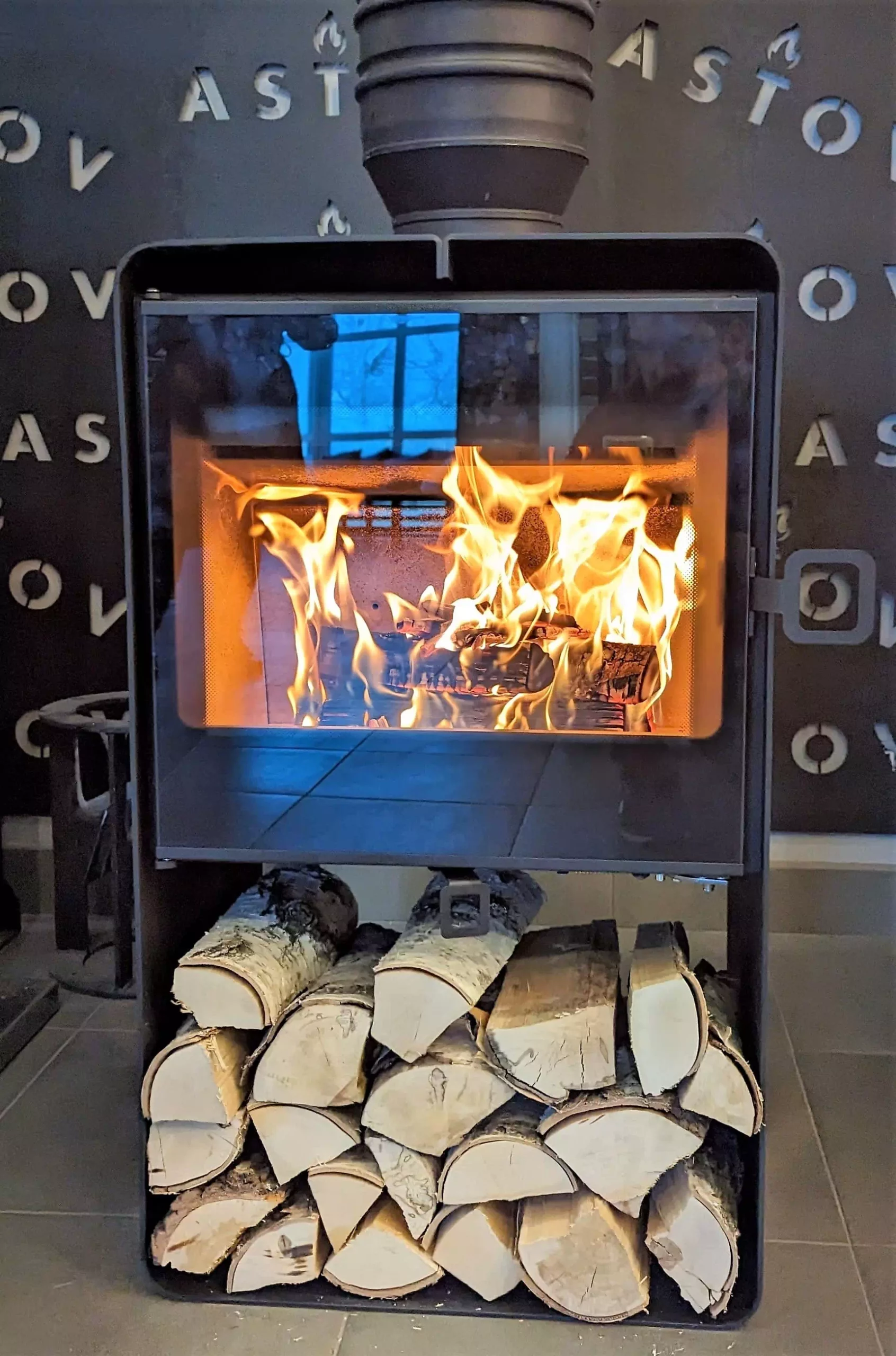 Топочная камера футерована вермикулитом. Система вторичного дожига обеспечивает высокую экономичность, экологичность печи-камина, благодаря которому стекло дверцы обдувается и не происходит его загрязнения (система “чистое стекло”).