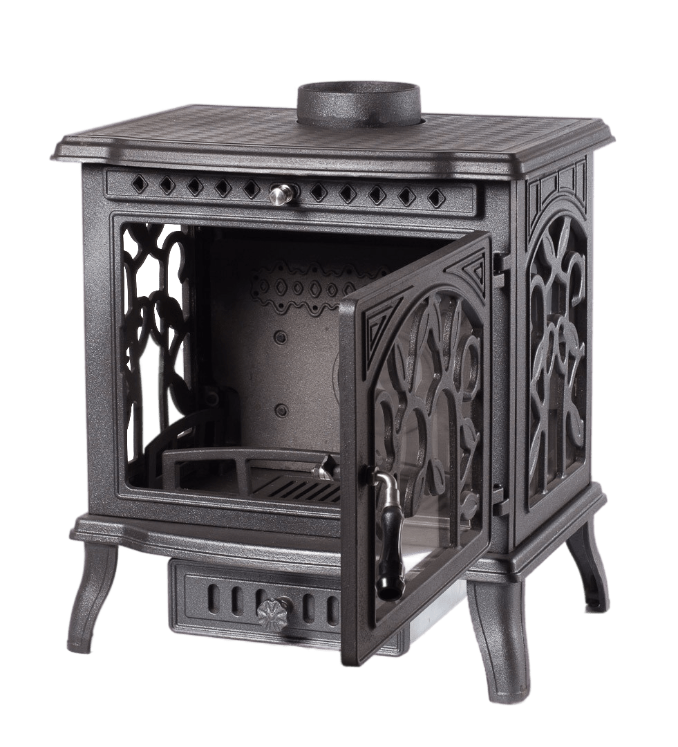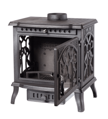 - оригинальную устойчивую конструкцию со скромными габаритами и тремя жаростойкими стёклами;