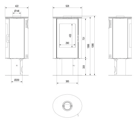 Печь Koza AB/S/N современной цилиндрической формы. Камера сгорания, корпус печи, верхняя плита и дверца изготовлены из стали. Печь имеет верхнее или заднее подключение к дымоходу. Камера сгорания футерована керамикой Acumotte. Дверца с большим панорамным стеклом. Камера под печкой оснащена механизмом «нажмите для открытия» – открывается нажатием. Тройная система подачи воздуха в камеру сгорания: первичный и вторичный воздух, а также воздух, который подаётся на стекло (система чистого стекла). Вся продукция компании Kratki.pl соответствует стандартам BImSchV 2, что гарантирует высокое качество продукции.