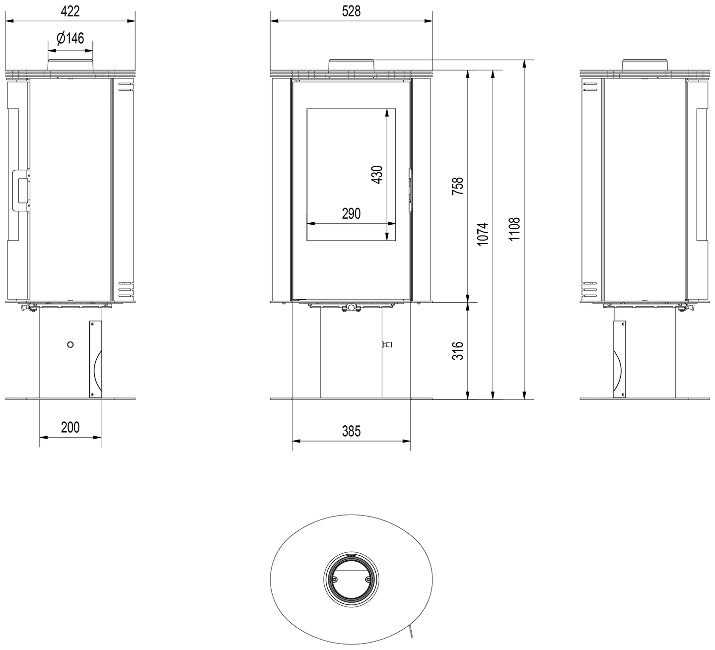 | Диаметр дымохода, мм | 150 |