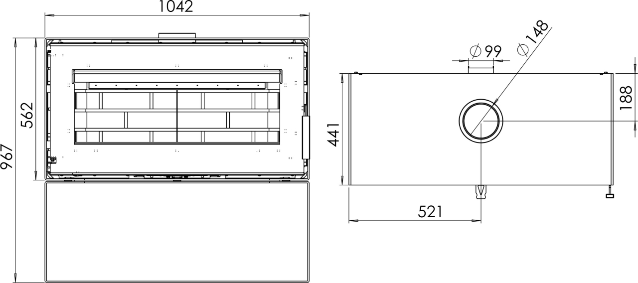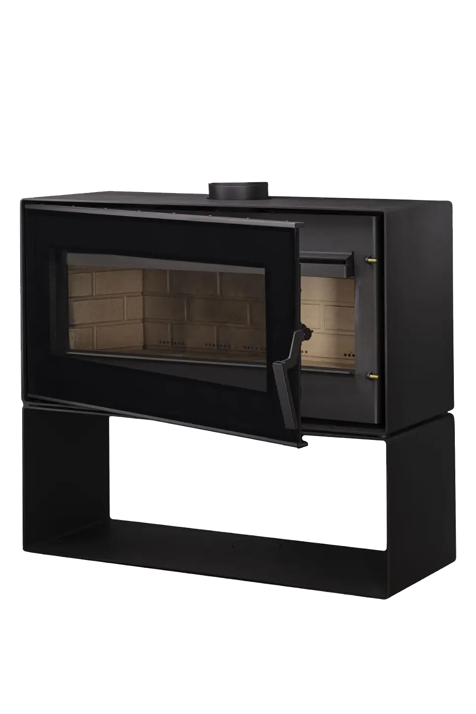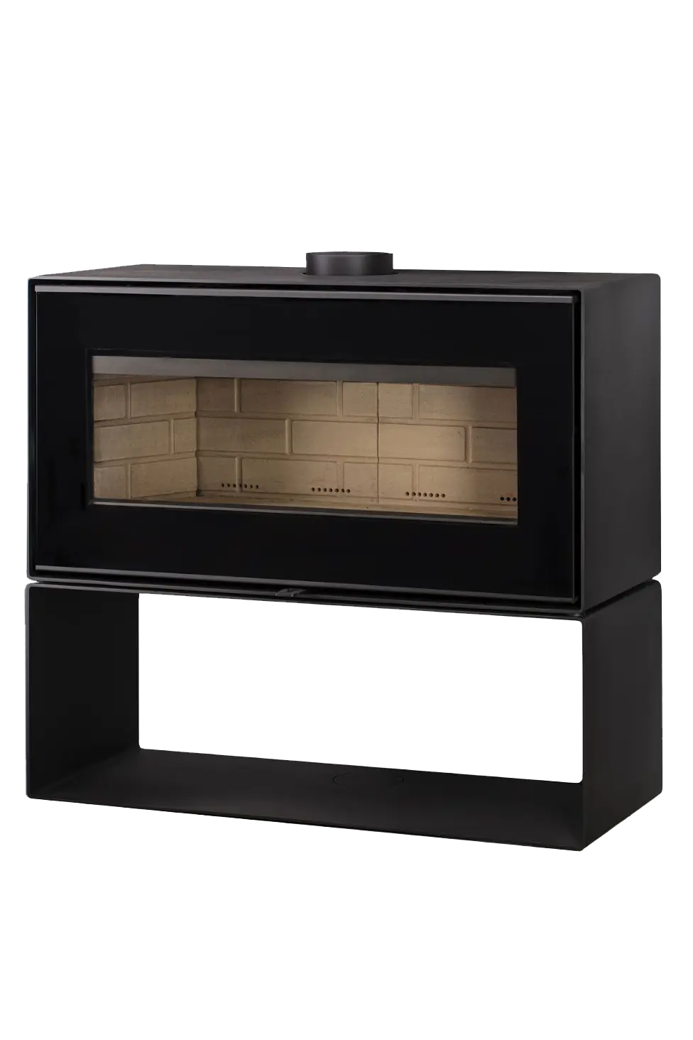 Современная, стильная и мощная печь-камин Монблан предлагает роскошную цельностеклянную переднюю часть и широкое остекление для еще большего удовольствия от огня. Масштабное панорамное стекло размером 1000*520 мм. оформлено черным принтом по периметру. Топка легко вмещает дрова длиной до 800 мм. Ниша под топкой может служить удобным дровником. Дверь снабжена самозакрывающейся системой двойного замка для идеальной герметичности, а дверная ручка является съемной. Печь-камин Монблан оснащена всеми современными характеристиками: система воздушной очистки стекла, система вторичного дожига газов, система подачи воздуха из «вне», возможность подключения дымохода сверху либо сзади. Корпус топки печи произведен из стали 4 мм, а кожух печи из стали 6 мм.