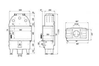 - Двойное стекло, если стоит задача обеспечить повышение КПД и снять температурную нагрузку, исходящую от дверцы топки. Для всех тех, кто хочет максимизировать рекуперацию тепла от камина, у нас есть запатентованное накопительное решение, называемое ТЕРМОБЛОК (THERMOBLOCK).
