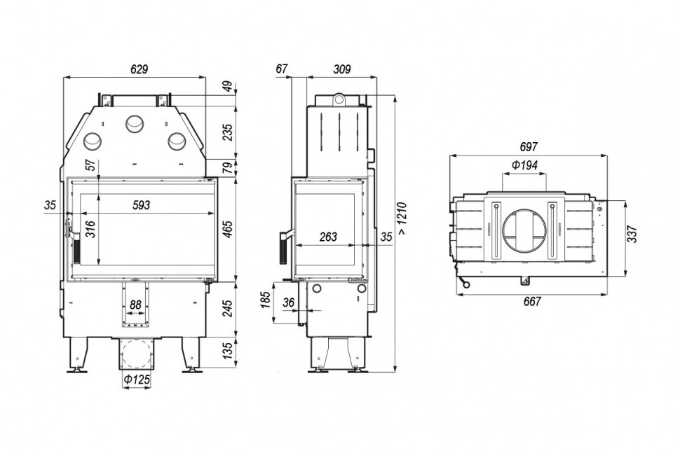 - Черная футеровка – Keramiton – особо прочная керамика с высокими защитными и теплонакопительными свойствами. Ручку и петли можно поменять местами, что очень важно при планировке проекта. Ручку можно заказать в черном цвете, если стальная выбивается из концепции. Для повышения эффективности работы, Вы можете заказать Thermoblock – система аккумуляции тепла, размещаемая на корпусе и дымосборнике.